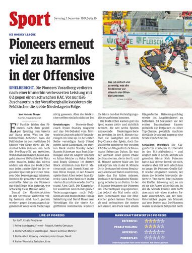 Spielbericht. Die Pioneers Vorarlberg verlieren nach einer immerhin verbesserten Leistung mit 0:2 gegen einen schwachen KAC. Vor nur 1526 Zuschauern in der Vorarlberghalle kassieren die Feldkircher die siebte Niederlage in Folge.