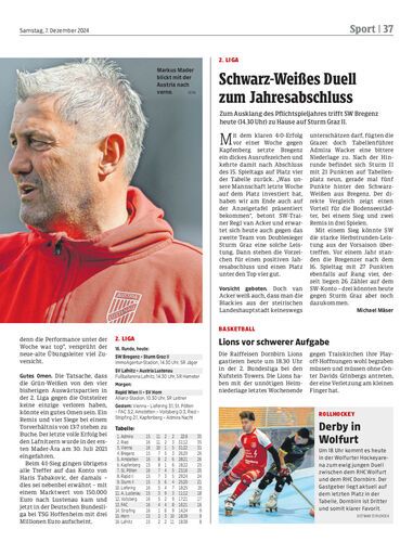 Zum Ausklang des Pflichtspieljahres trifft SW Bregenz heute (14.30 Uhr) zu Hause auf Sturm Graz II.