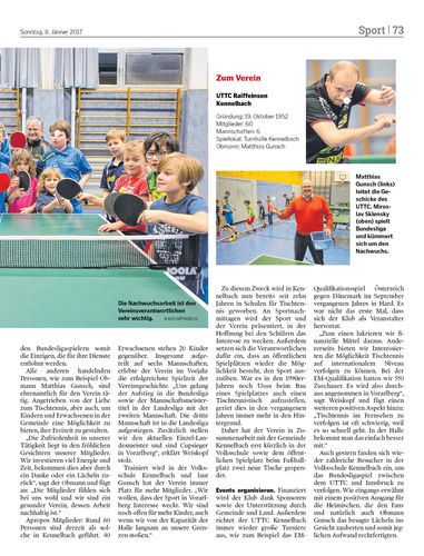 Der UTTC Raiffeisen Kennelbach spielt in der 1. Tischtennis-Bundesliga und kämpft um den Ligaverbleib. Ziel des Vereins ist es außerdem seinen Sport in Vorarlberg bei Jung und Alt populärer zu machen.
