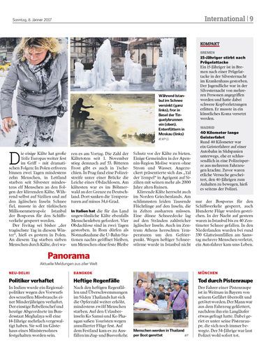 Dutzende Menschen erfroren wegen der eisigen Kälte. In Istanbul wurde der Bosporus gesperrt, selbst in der Ägäis und auf Sizilien fiel Schnee.