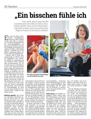 Fast acht Jahre lang hat die Lustenauerin Eva Bösch (34) in Australien gelebt. Nun ist die Physiotherapeutin wieder zurück und hat ihre eigene Praxis in Dornbirn eröffnet.