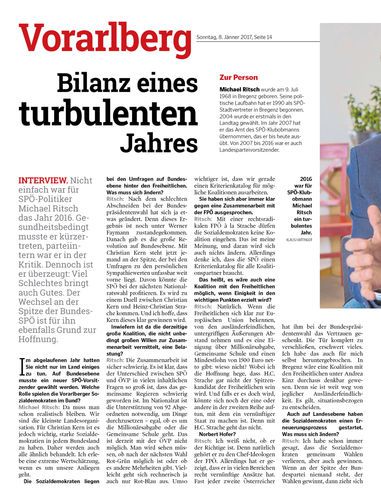 Interview. Nicht einfach war für SPÖ-Politiker Michael Ritsch das Jahr 2016. Gesundheitsbedingt musste er kürzertreten, parteiintern war er in der Kritik. Dennoch ist er überzeugt: Viel Schlechtes bringt auch Gutes. Der Wechsel an der Spitze der Bundes-SPÖ ist für ihn ebenfalls Grund zur Hoffnung.