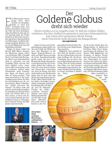 Heute werden in Los Angeles zum 74. Mal die Golden Globes verliehen. Ein Star-Auflauf ist garantiert, und eine Schauspielerin hat schon jetzt gewonnen: Meryl Streep. Auch Österreich steht diesmal im Rampenlicht. Von Luigi Heinrich