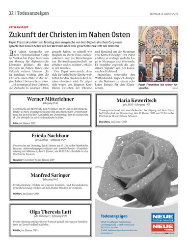 sprach über Krisenherde auf der Welt und über eine gesicherte Zukunft der Christen.
