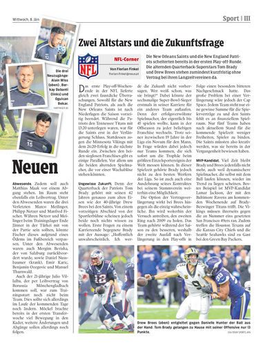Die New Orleans Saints und die New England Patriots scheiterten bereits in der ersten Play-off-Runde. Die alternden Quarterback-Superstars Tom Brady und Drew Brees stehen zumindest kurzfristig ohne Vertrag bei ihren Langzeitvereinen da.