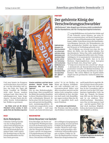 „Büffelmann“ Jake Angeli aus Arizona steht symbolisch für die Randalierer, die für Trump das Kapitol enterten.