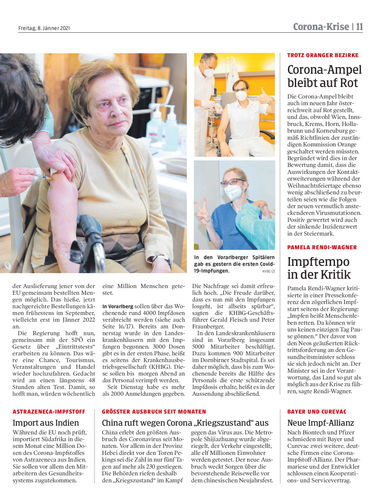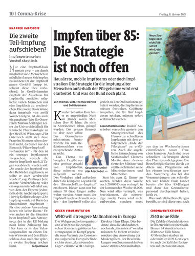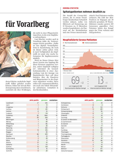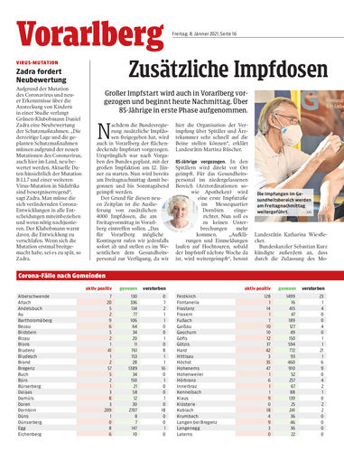 Großer Impfstart wird auch in Vorarlberg vorgezogen und beginnt heute Nachmittag. Über 85-Jährige in erste Phase aufgenommen.