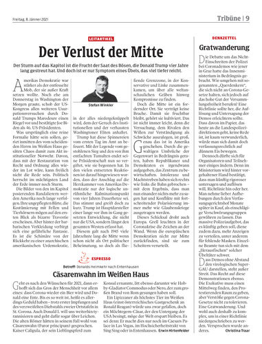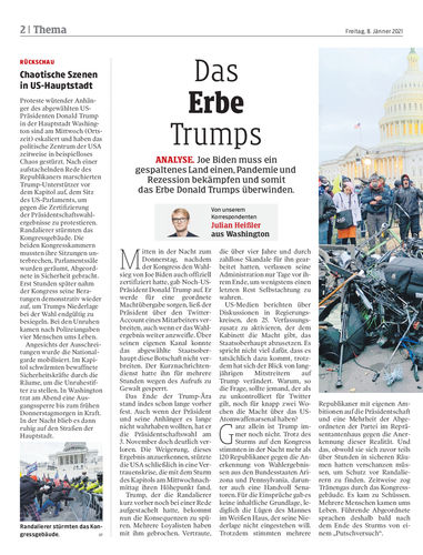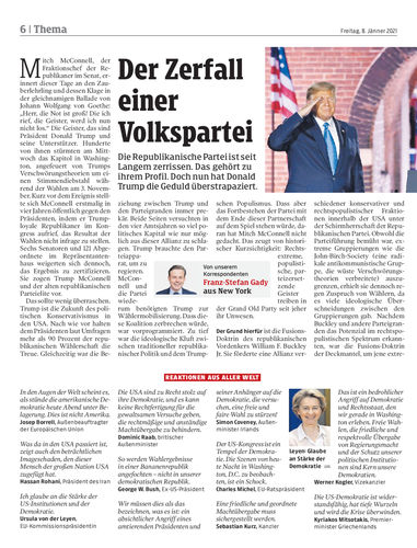 Am Scheideweg. Nach dem Sturm von Trump-Anhängern auf das US-Kapitol ist das zerrissene Land am Scheideweg angelangt. Auch die Republikaner müssen nun entscheiden, wie es für sie weitergehen soll. Seiten 2–7, 9 Reuters