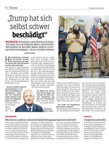 Schockiert vom Sturm aufs Kapitol zeigt sich auch Martin Weiss, Österreichs Botschafter in den USA. Biden sieht er vor einer Herkulesaufgabe – die er schaffen könnte. Von Nina Koren