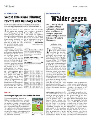 Der ECB trägt heute Abend (18.30 Uhr) sein erstes Derby auf eigenem Eis aus. Im Hinspiel gegen die Feldkircher gab es eine bittere 2:3-Overtime-Niederlage.