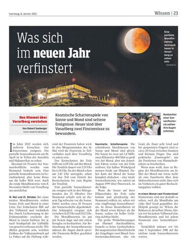 Kosmische Schattenspiele von Sonne und Mond sind seltene Ereignisse. Heuer sind über Vorarlberg zwei Finsternisse zu bewundern.