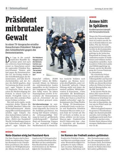 In einer TV-Ansprache erteilte Kasachstans Präsident Tokajew den Schießbefehl gegen die Demonstranten.
