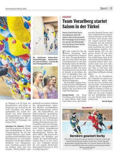 Heute startet das Team Vorarlberg in seine 26. Saison. Den Anfang macht die viertägige Tour of Antalya, bei der die Oberländer kurzfristig auf zwei Fahrer verzichten müssen.