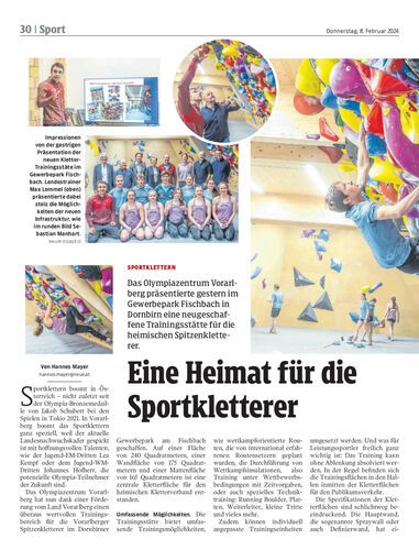 Das Olympiazentrum Vorarlberg präsentierte gestern im Gewerbepark Fischbach in Dornbirn eine neugeschaffene Trainingsstätte für die heimischen Spitzenkletterer.