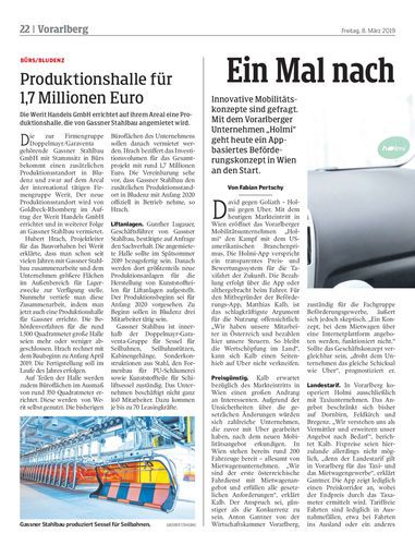 Innovative Mobilitätskonzepte sind gefragt. Mit dem Vorarlberger Unternehmen „Holmi“ geht heute ein App-basiertes Beförderungskonzept in Wien an den Start.