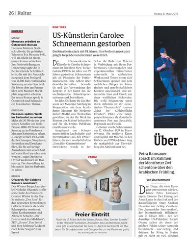 Die Künstlerin starb mit 79 Jahren. Ihre Performancekunst prägte folgende Generationen wesentlich.
