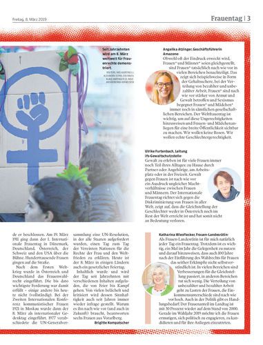 Heute ist der Internationale Frauentag. Vor über 100 Jahren eingeführt, wird dessen Sinnhaftigkeit mittlerweile von vielen angezweifelt. Warum es ihn auch heute noch braucht, beantworten sechs Vorarlberger Frauen.