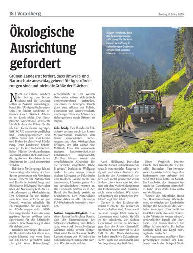 Grünen-Landesrat fordert, dass Umwelt- und Naturschutz ausschlaggebend für Agrarförderungen sind und nicht die Größe der Flächen.