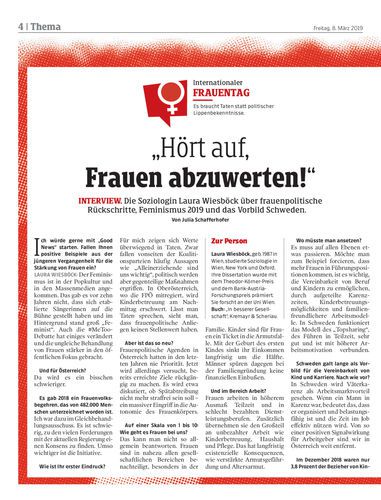 Die Soziologin Laura Wiesböck über frauenpolitische Rückschritte, Feminismus 2019 und das Vorbild Schweden. Von Julia Schafferhofer