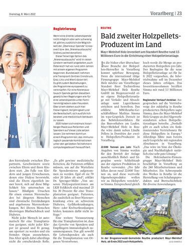 Mayr-Melnhof Holz investiert am Standort Reuthe rund 3,5 Millionen Euro in die Errichtung einer Holzpelletieranlage.