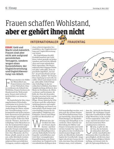 ESSAY. Geld und Macht sind männlich. Frauen sind aber nicht arm aufgrund persönlichen Versagens, sondern wegen eines Systemfehlers: der Ungleichverteilung und Ungleichbewertung von Arbeit.