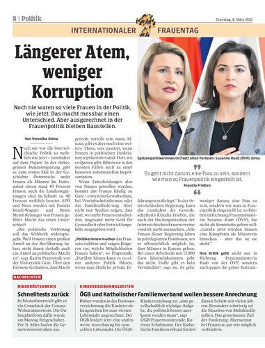 Noch nie waren so viele Frauen in der Politik, wie jetzt. Das macht messbar einen Unterschied. Aber ausgerechnet in der Frauenpolitik bleiben Baustellen.