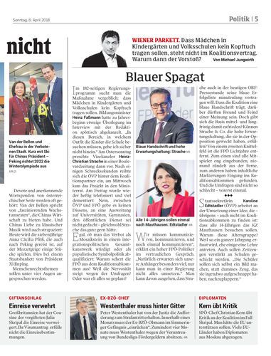 wiener Parkett. Dass Mädchen in Kindergärten und Volksschulen kein Kopftuch tragen sollen, steht nicht im Koalitionsvertrag. Warum dann der Vorstoß? Von Michael Jungwirth