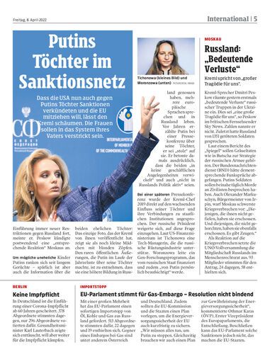 Dass die USA nun auch gegen Putins Töchter Sanktionen verkündeten und die EU mitziehen will, lässt den Kreml schäumen. Die Frauen sollen in das System ihres Vaters verstrickt sein.