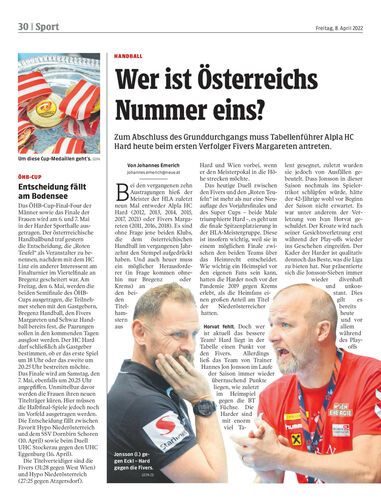 Zum Abschluss des Grunddurchgangs muss Tabellenführer Alpla HC Hard heute beim ersten Verfolger Fivers Margareten antreten.