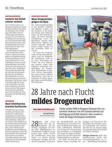 Türke stellte 1995 in Bregenz Zimmer für versuchten Verkauf von 435 Gramm Heroin zur Verfügung und floh danach. Nun wurde er nach 36 Tagen Gefängnis enthaftet.