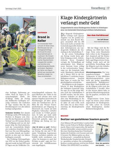 Gruppenleiterin eines Kindergartens fordert in Arbeitsprozess von Gemeinde Einstufung in höhere Gehaltsklasse.