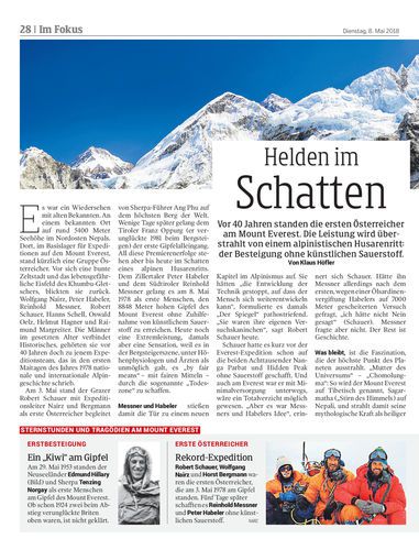 Vor 40 Jahren standen die ersten Österreicher am Mount Everest. Die Leistung wird überstrahlt von einem alpinistischen Husarenritt: der Besteigung ohne künstlichen Sauerstoff. Von Klaus Höfler