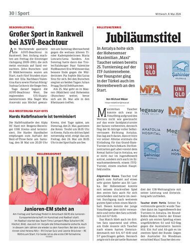 In Antalya holte sich der Hohenemser Maximilian „Maxi“ Taucher seinen bereits 25. Turniersieg auf der ITF-Juniorenebene. Der Youngster ging in der Türkei auch im Herrenbewerb an den Start.