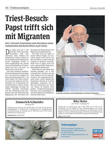Am 7. Juli reist Franziskus zum Abschluss eines italienischen Kirchentreffens nach Triest.