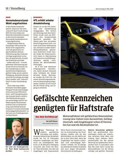 Motorradfahrer mit gefälschten Kennzeichen zwang Lkw-Fahrer zum Ausweichen. Gefängnisstrafe, weil Angeklagter schon 22 Vorstrafen hat und ein Rückfalltäter ist.