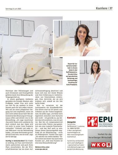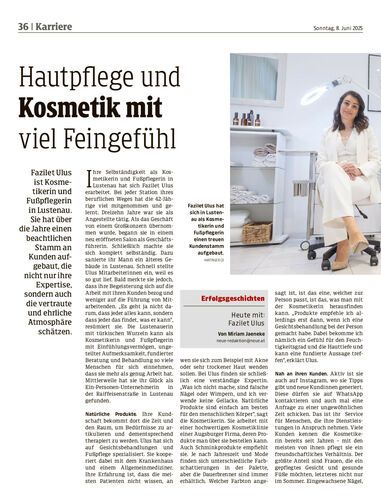 Fazilet Ulus ist Kosmetikerin und Fußpflegerin in Lustenau. Sie hat über die Jahre einen beachtlichen Stamm an Kunden aufgebaut, die nicht nur ihre Expertise, sondern auch die vertraute und ehrliche Atmosphäre schätzen.