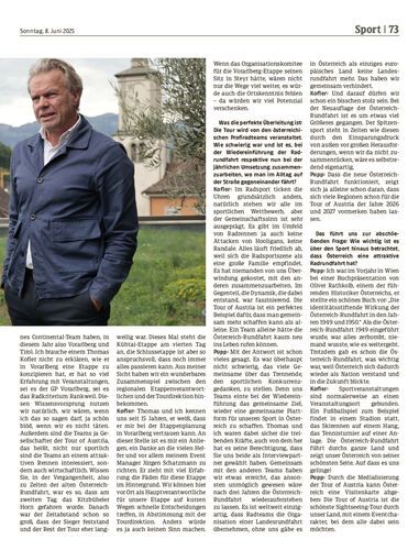 Interview. Vom 9. bis 13. Juli findet die 74. Tour of Austria statt. Die Österreich-Rundfahrt beginnt in Steyr und endet in Feldkirch. Aus diesem Anlass fand am Mittwoch in der Montfortstadt eine Pressekonferenz statt. Ein Sport-Talk mit Tourdirektor Thomas Pupp und Team-Vorarlberg-Boss Thomas Kofler, der für die Schlussetappe verantwortlich ist.