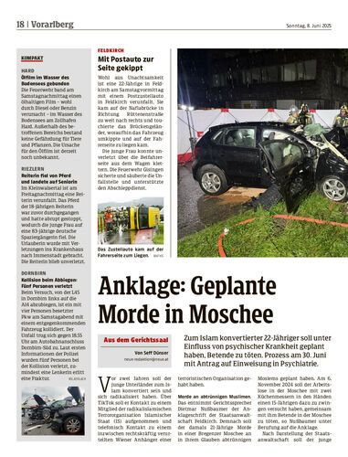 Zum Islam konvertierter 22-Jähriger soll unter Einfluss von psychischer Krankheit geplant haben, Betende zu töten. Prozess am 30. Juni mit Antrag auf Einweisung in Psychiatrie.