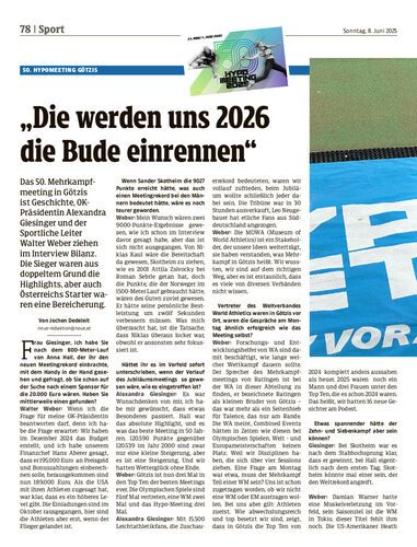 Das 50. Mehrkampfmeeting in Götzis ist Geschichte, OK-Präsidentin Alexandra Giesinger und der Sportliche Leiter Walter Weber ziehen im Interview Bilanz. Die Sieger waren aus doppeltem Grund die Highlights, aber auch Österreichs Starter waren eine Bereicherung.