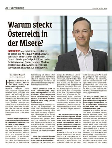 Interview. Matthias Schnetzer leitet ab sofort die Abteilung Wirtschaftswissenschaft und Statistik der AK Wien. Damit tritt der gebürtige Schlinser in die Fußstapfen von Finanzminister Markus Martenbauer. Eine Analyse der aktuell schwierigen Situation für die Republik.