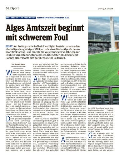 Essay. Am Freitag stellte Fußball-Zweitligist Austria Lustenau den ehemaligen langjährigen VN-Sportredakteur Dieter Alge als neuen Sportdirektor vor – und machte die Vorstellung des 59-Jährigen zur Exklusivveranstaltung für Alges Ex-Arbeitgeber. NEUE-Sportchef Hannes Mayer macht sich darüber so seine Gedanken.