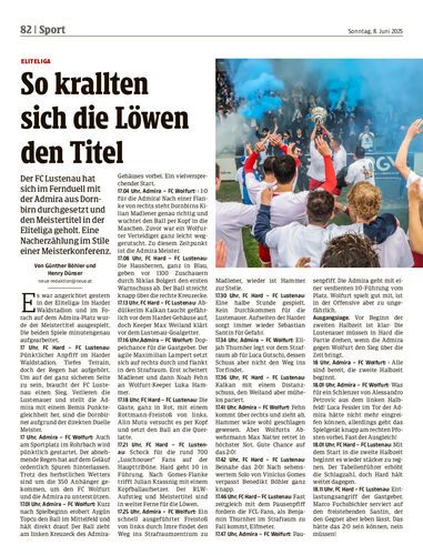 Der FC Lustenau hat sich im Fernduell mit der Admira aus Dornbirn durchgesetzt und den Meistertitel in der Eliteliga geholt. Eine Nacherzählung im Stile einer Meisterkonferenz.