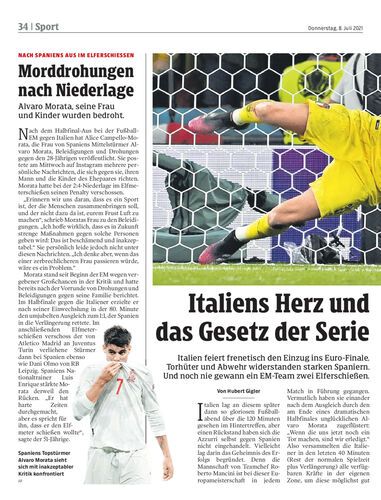 Italien feiert frenetisch den Einzug ins Euro-Finale. Torhüter und Abwehr widerstanden starken Spaniern. Und noch nie gewann ein EM-Team zwei Elferschießen.