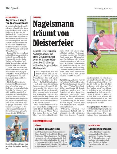 Gestern leitete Julian Nagelsmann seine erste Übungseinheit beim FC Bayern München. Der 33-Jährige will unbedingt auf den Marienplatz.