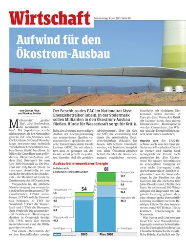 Der Beschluss des EAG im Nationalrat lässt Energiebetreiber jubeln. In der Steiermark sollen Milliarden in den Ökostrom-Ausbau fließen. Hürde für Wasserkraft sorgt für Kritik.