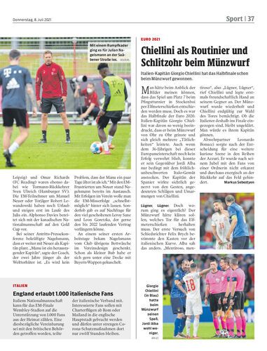 Italien-Kapitän Giorgio Chiellini hat das Halbfinale schon beim Münzwurf gewonnen.