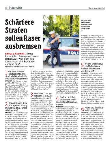 FRAGE & Antwort. Heute kommt das „Raserpaket“ in den Nationalrat. Was blüht den Autofahrern ab 1. September damit genau? Von Daniele Marcher und Thomas Macher