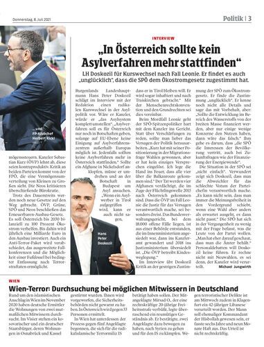 LH Doskozil für Kurswechsel nach Fall Leonie. Er findet es auch „unglücklich“, dass die SPÖ dem Ökostromgesetz zugestimmt hat.