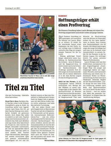Die Pioneers Vorarlberg haben Laurin Wempe mit einem Profivertrag ausgestattet und setzen weiter auf junge Talente.