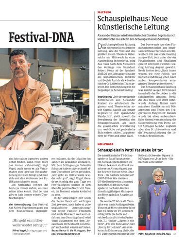 Alexander Kratzer wird künstlerischer Direktor, Sophia Aurich künstlerische Co-Leiterin des Schauspielhauses Salzburg.